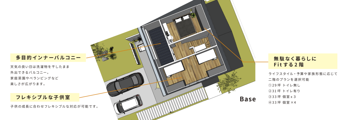 ライフスタイル・予算や家族形態に応じて二階のプランを選択可能