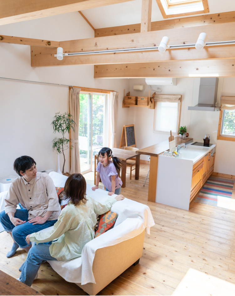 地震や台風に強い住まいを実現。通気暦構造と高性能断熱材が世代を超えて住み継げる家として長年にわたり高い断熱性能を保ち続けます。